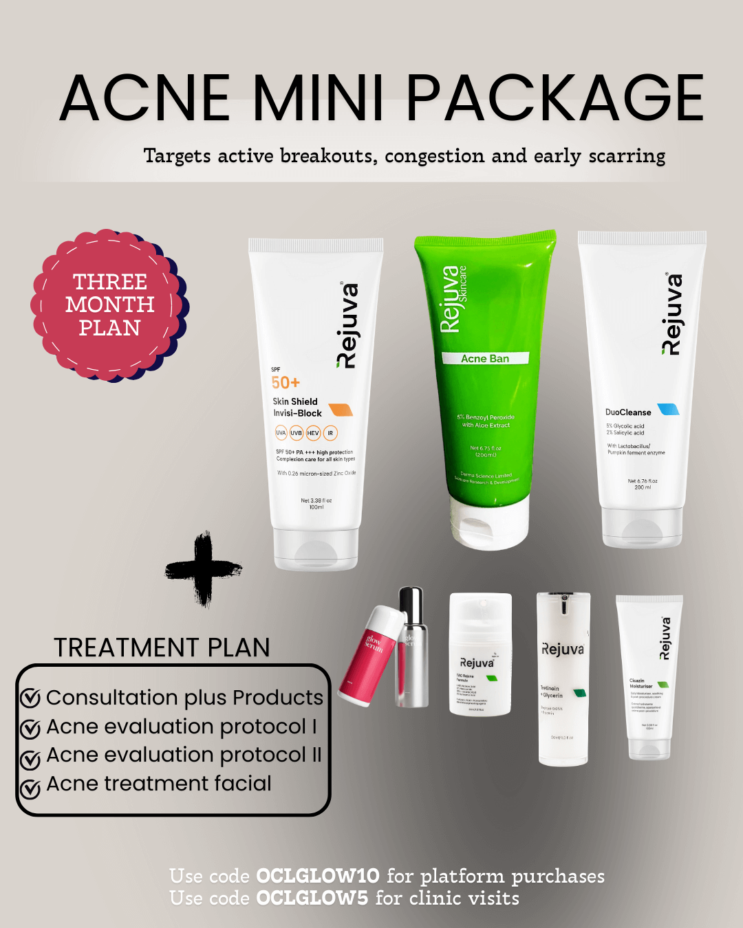 A structured acne clearing plan that targets active breakouts and congestion using medical grade products and a staged treatment protocol. Perfect for clients with ongoing acne flare patterns.